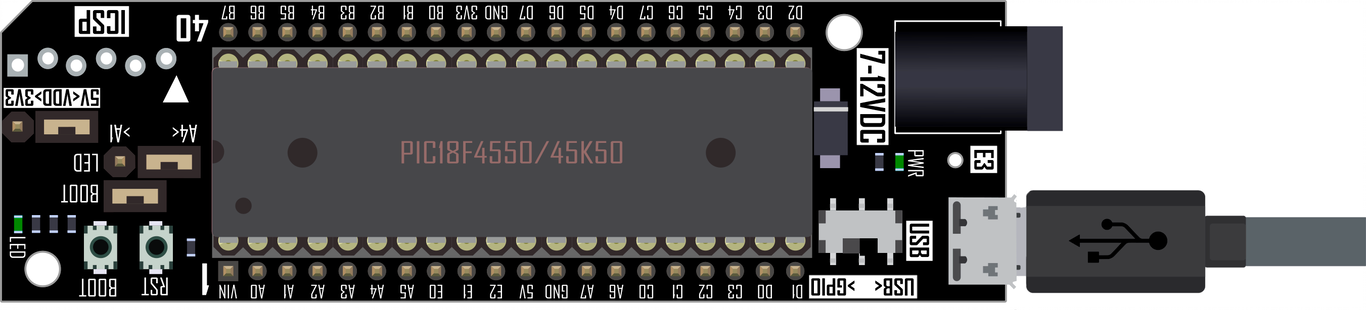 En esta práctica se utiliza el LED que se encuentra conectado al pin A4 de la tarjeta X-TRAINER con el PIC18F4550/PIC18F45K50. El pin A4 es configurado como salida y señal digital, y el pin A2 de dicho módulo, es configurado como una entrada y señal digital para saber el estado del botón BOOT; por lo que el estado del LED cambiará a encendido cuando se presione el botón.