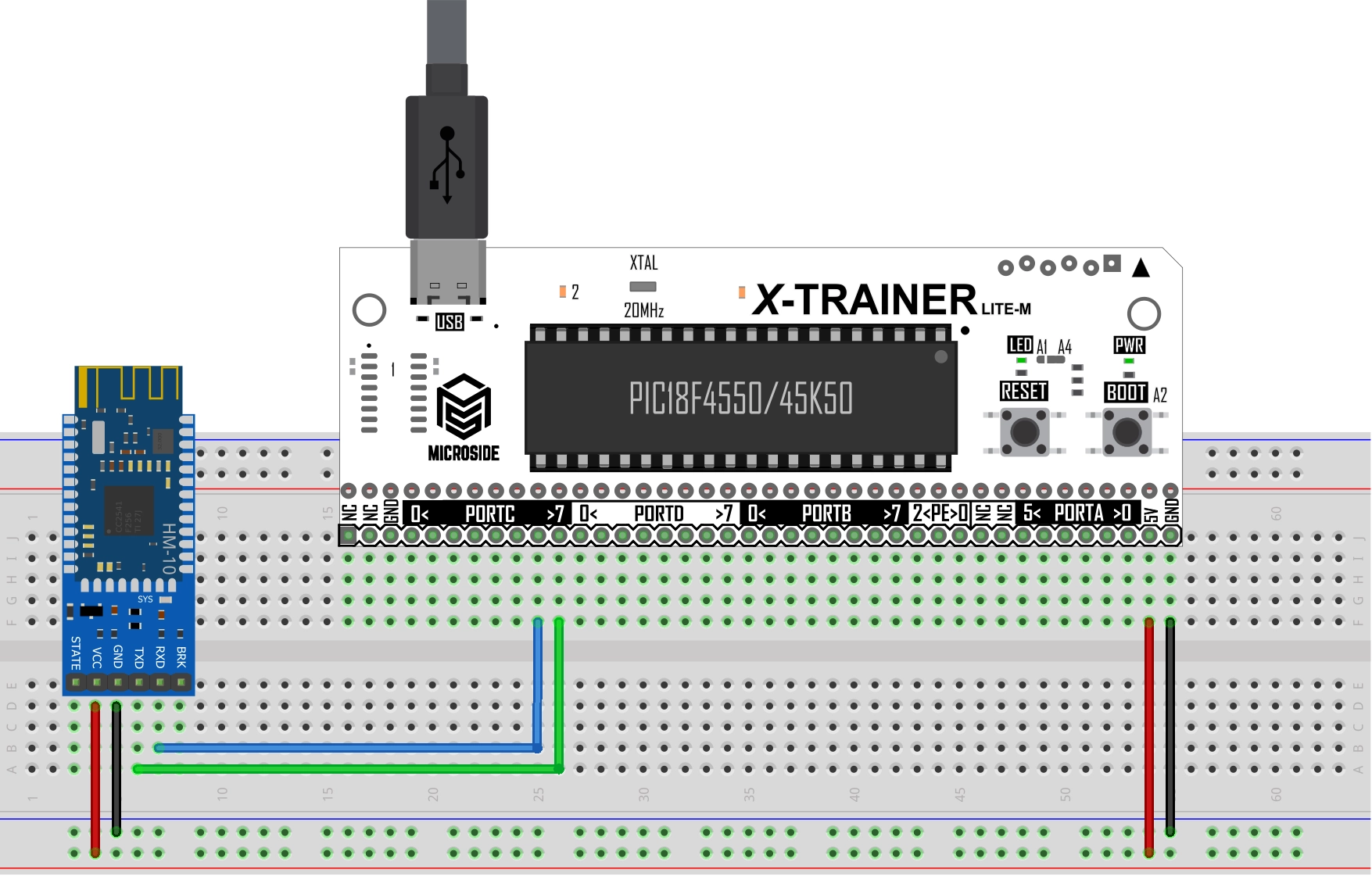 <figure><img src="https://177299348-files.gitbook.io/~/files/v0/b/gitbook-x-prod.appspot.com/o/spaces%2FbyV2zAlQAiqg46a3Lr8z%2Fuploads%2F5FIqoBFmQrxHppdAcAs5%2FBluetooth%20HM-10%20PIC18F44550%20o%20PIC18F45K50%20X-TRAINER%20LITE%20M%20MICROSIDE.webp?alt=media&#x26;token=f1e1c995-a6bb-42ba-8981-4b1c483a1d34" alt=""><figcaption></figcaption></figure>
