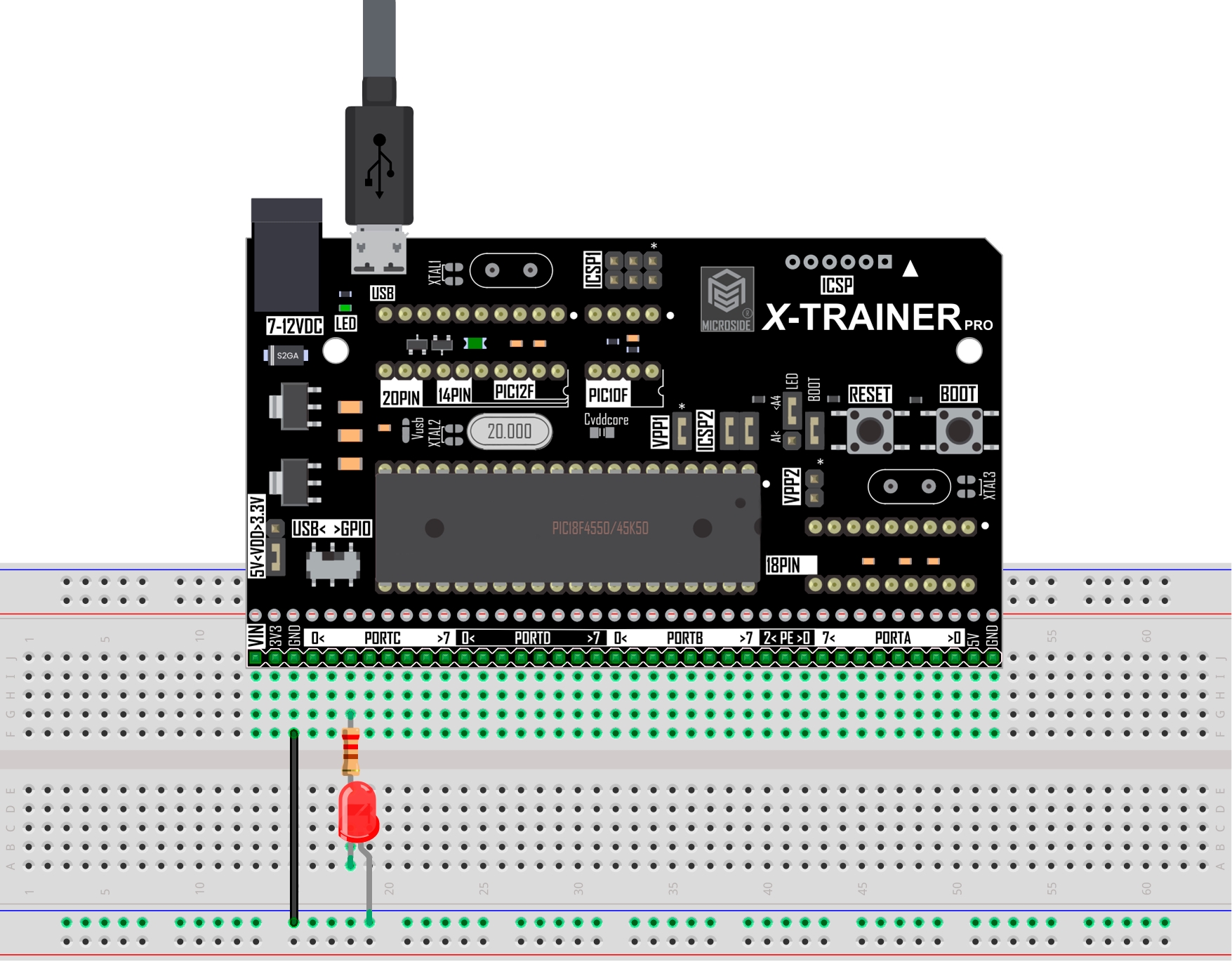 En esta práctica se implementa un control PWM para regular la intensidad luminosa de un LED, el cual está conectado al pin C2 del la tarjeta X-TRAINER con el PIC18F4550/PIC18F45K50.