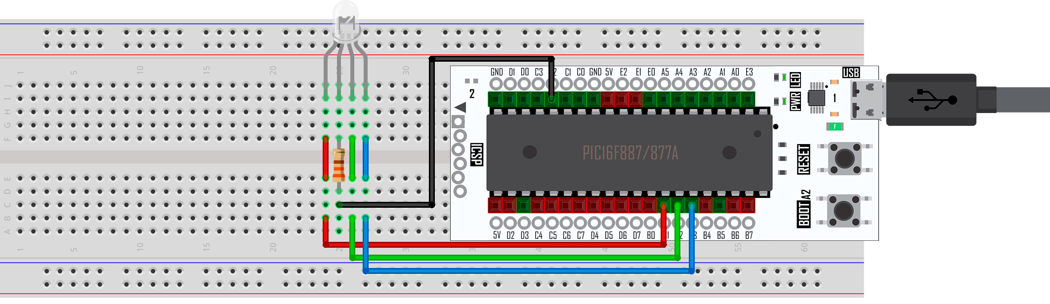 En esta práctica se realiza un control PWM para regular la intensidad luminosa de cada color de un LED RGB de cátodo común, por medio de un puerto PWM, usando la tarjeta X-TRAINER con el PIC16F887/PIC16F877A.