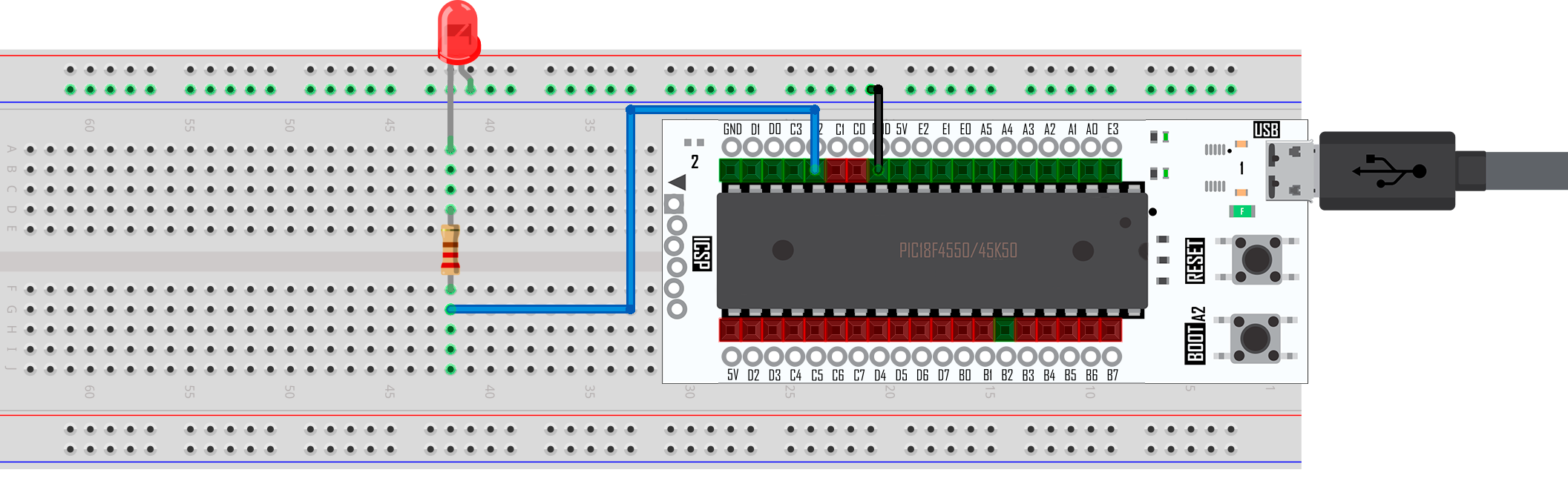En esta práctica se implementa un control PWM para regular la intensidad luminosa de un LED, el cual está conectado al pin C2 del la tarjeta X-TRAINER con el PIC18F4550/PIC18F45K50.